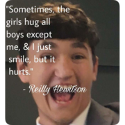 An image of Reilly Hewitson with the caption Sometimes, the girls hug all boys except me, & I just smile, but it hurts.